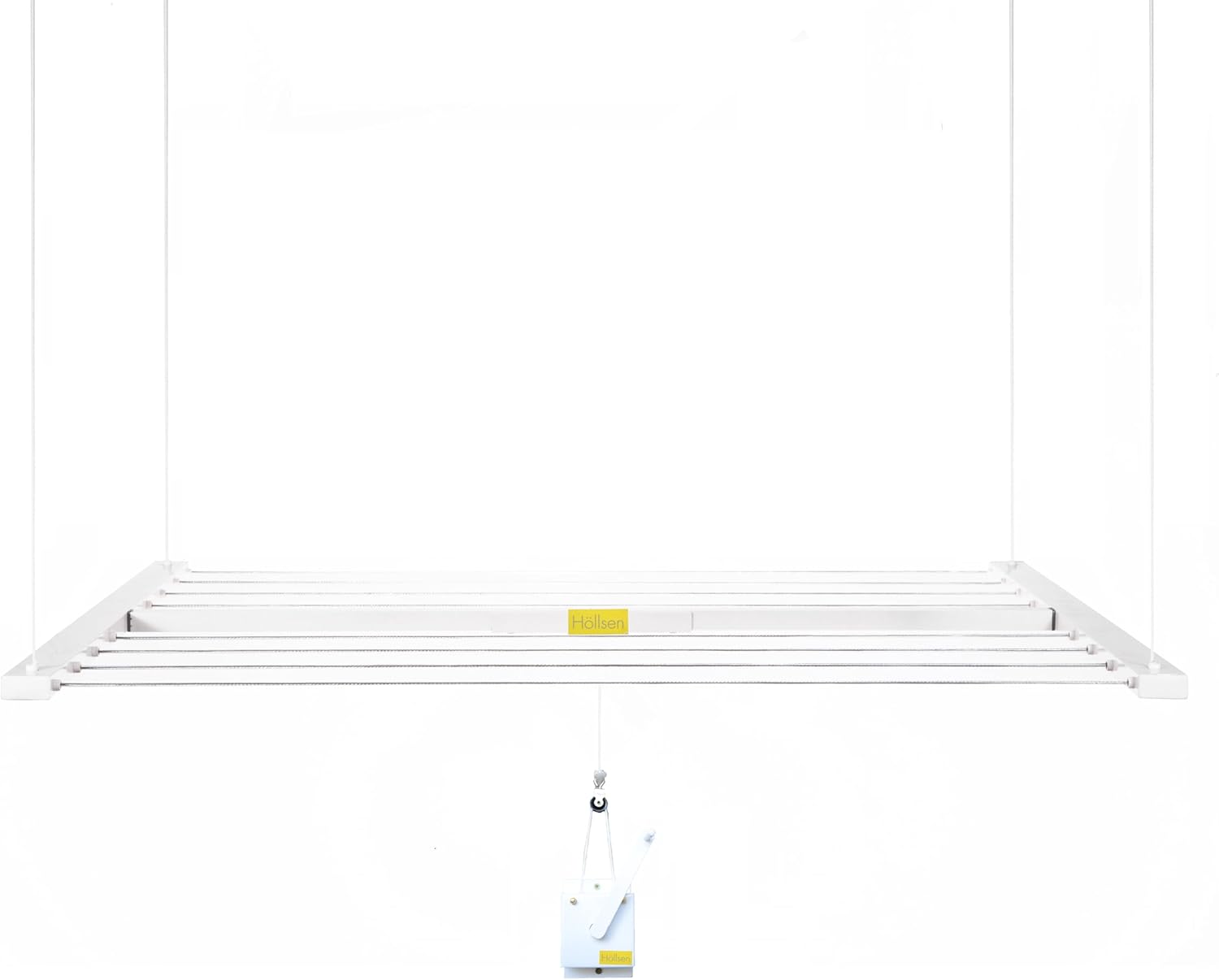 - TODO INCLUIDO – LISTO PARA UNA INSTALACIÓN SENCILLA: Tu caja Höllsen llega con todo lo que necesitas: ✔️ 1 bastidor de aluminio premontado con 8 o 10 cables de acero recubiertos de PVC (según el modelo). ✔️ 1 mecanismo de elevación accionado por manivela con bloqueo automático y correa de 1,5 m. ✔️ 8 poleas de acero premium de 25 mm con marcos de acero y ruedas de plástico. ✔️ 6 ganchos de acero con arandelas para cubrir cualquier imperfección del techo. ✔️ 3 tornillos y anclajes Fisher de alta calidad para una instalación segura. ✔️ 14 metros de cuerda de nailon trenzada de alta tenacidad de 3,5 mm (3,5 m por lado). ✔️ Instrucciones de instalación paso a paso incluidas.