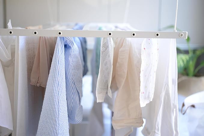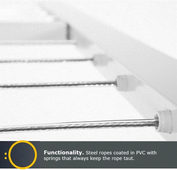 - DISEÑO PREMIUM, FUNCIONAL Y ELEGANTE: Fabricado con dos perfiles de aluminio duraderos pintados en blanco que resisten la oxidación y el desgaste. Cuenta con 8 o 10 cordones de acero ultrarresistentes recubiertos de PVC para proteger tu ropa y evitar que se deforme. Incluye protectores de plástico rígido en los extremos para mayor durabilidad y seguridad de la prenda. Un mecanismo de resorte integrado mantiene los cordones perfectamente tensos en todo momento. Diseñado para futuras actualizaciones: añade fácilmente una funda de tela microperforada a juego para ocultar tu ropa con estilo.